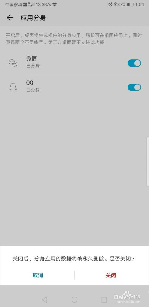 如果我们不想双开了,那么按照同样的方法关闭即可,不过要注意的时关闭的时候手机里面相应的数据都会删除,谨慎处理!