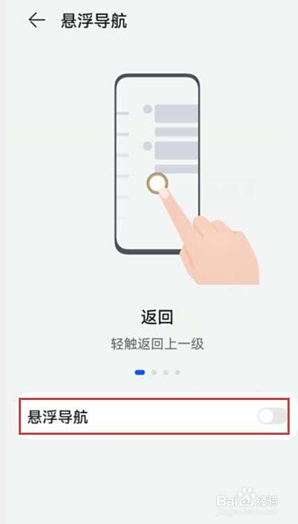 点击关闭悬浮导航后面的按钮即可取消屏幕上小圆球。