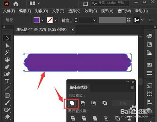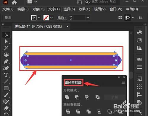 拖动鼠标将紫色矩形叠放到橙色矩形上,设置居中对齐,并按下键盘的SHIFT+CTRL+F9键打开路径查找器;