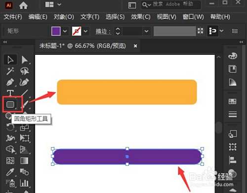 打开界面后,点击圆角矩形工具绘制两个不同大小的圆角矩形;