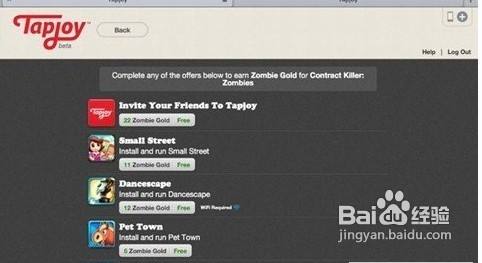 第一个活动是邀请你的朋友使用Tapjoy,获得22金砖,只要后面标有free 字样的,都可以点击。