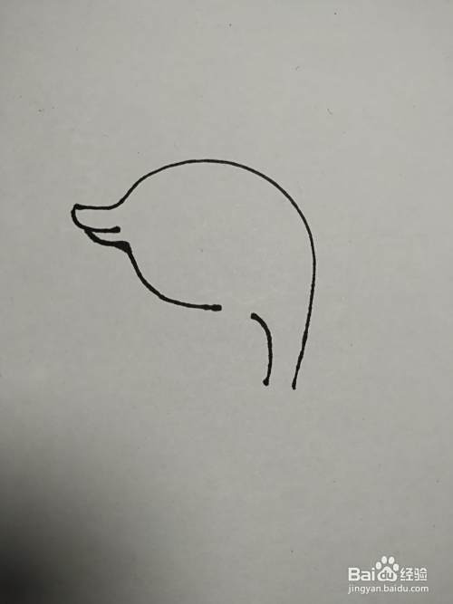 在上方画一条大大的弧线。作为海豚上半部分的轮廓线。