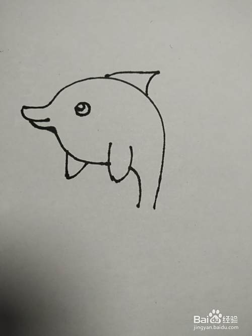 在海豚的身体下半部分,画出海豚的两个鱼鳍。