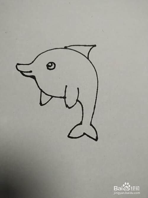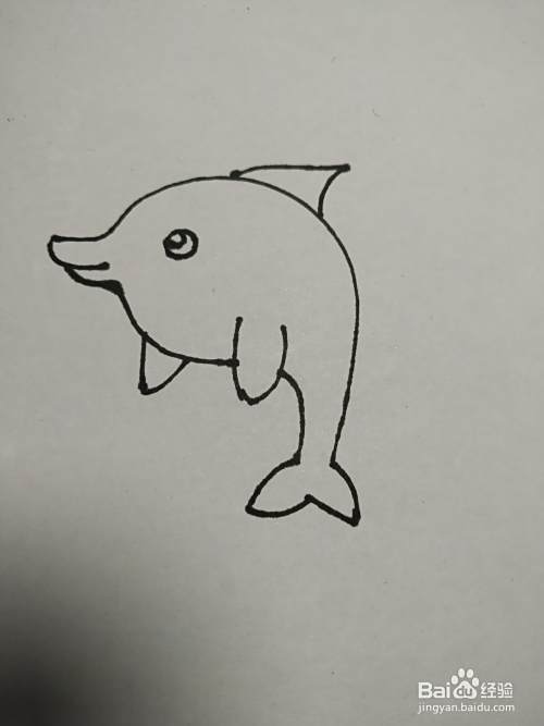 在海豚身体的下方画出海豚的尾巴。海豚的简笔画就完成了。
