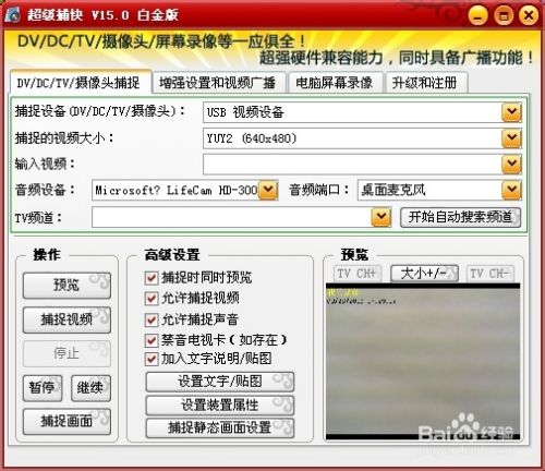点击“DV/DC/TV/摄像头捕捉”选项卡,捕捉视频