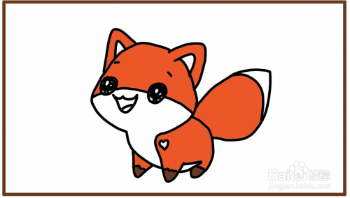 最后就是涂上颜色,画一个装饰框,这样可爱的狐狸就画好了。