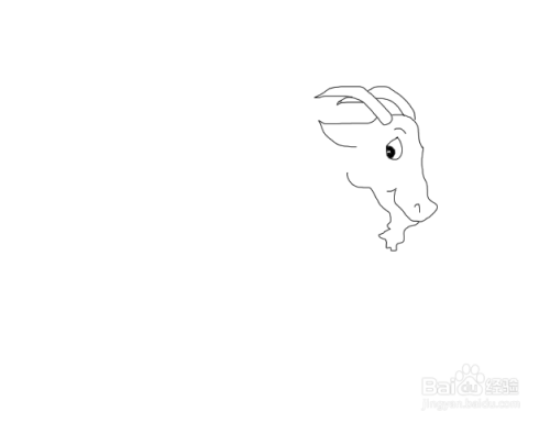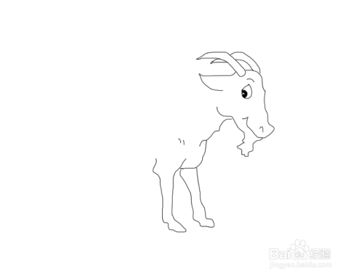 在头部下面左侧位置再画出小山羊的两条腿,如图所示: