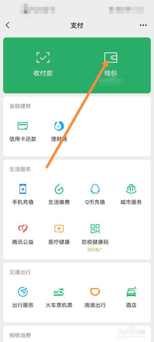 点击右下角“我”,单击支付,打开钱包