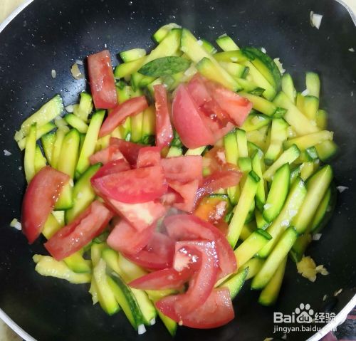 放入西红柿翻炒一分钟。
