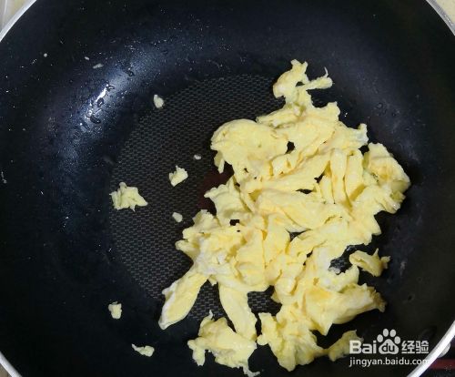 锅中放油,油热后将鸡蛋放入炒熟,盛出备用。