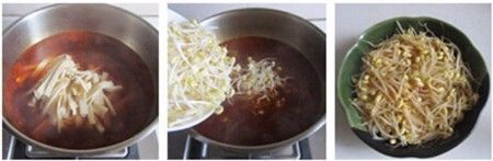将煮好的千张丝平铺在碗底,再码上豆芽菜;