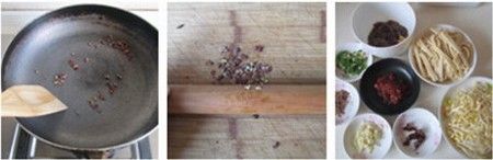 油微微冒烟时关火,将热油浇淋在调味料表面上;