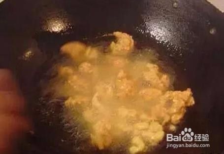 用筷子取出弄好的粘稠的肉糊,放入油锅中,炸一炸,用筷子及时搅拌,不让粘连,及时翻面。