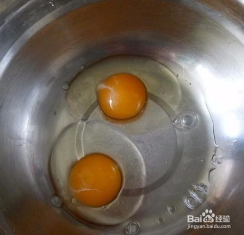 先打2个鸡蛋,倒入一个碗中,准备好。