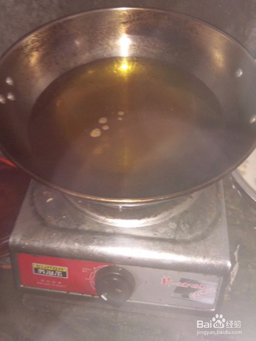 可以烧火了,大火烧,锅内没有水分后,即可倒入植物油,油煎并油沸腾。
