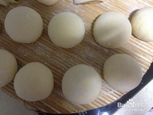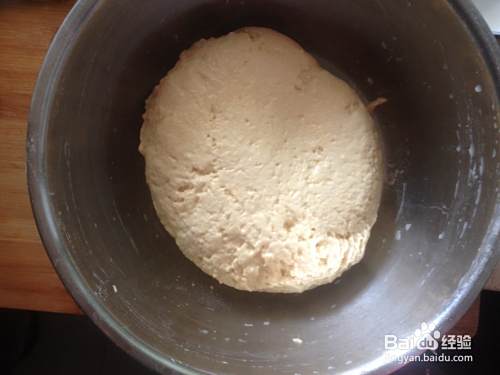 面团发至原来2倍大,放面板上排气,揉匀,面板上放适量面粉,防止粘在面板上。