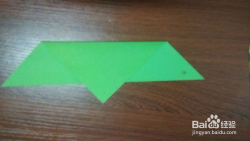 五、折完之后然后再将折纸反过来,然后就差一点就可以很明显的看出蚱蜢的形状,然后再用比将它的眼睛画上。