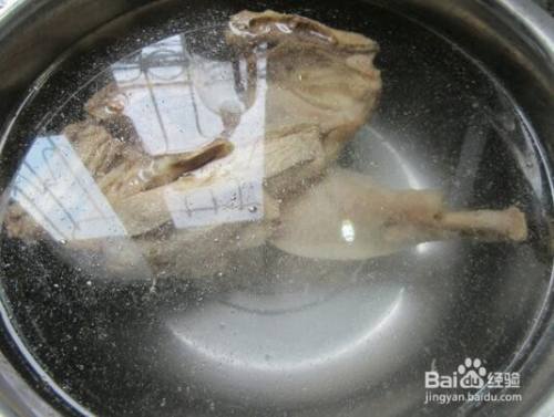 将三黄鸡取出,浸泡在冰水中1个小时。