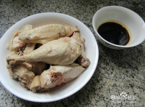 然后,将浸泡好的三黄鸡放在案板上斩开,装入盘中,蘸着酱油可以吃吃了。