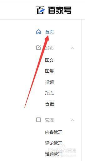 1、进入百家号,点击首页按钮。