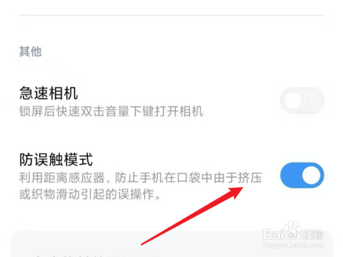 把右边的开关打开后,就启用了这个防误触的模式了,不用担心误操作了。