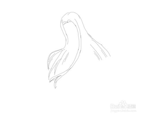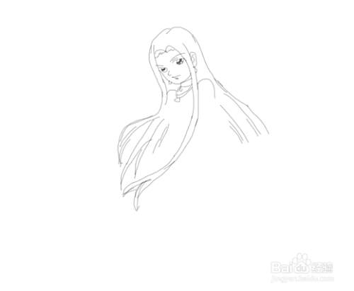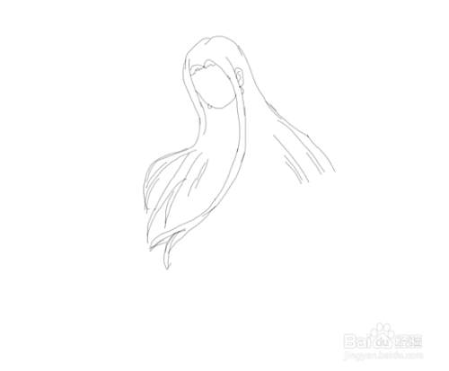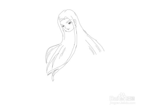 先画出美人鱼的头发造型,然后再画出美人鱼的头发丝,如图所示: