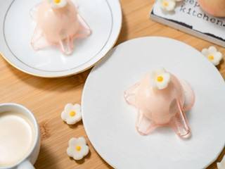 取出桃子布丁,脱模。