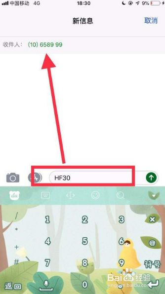 第二步:编辑短信HF30并发送到10658999,可兑换三十元话费。