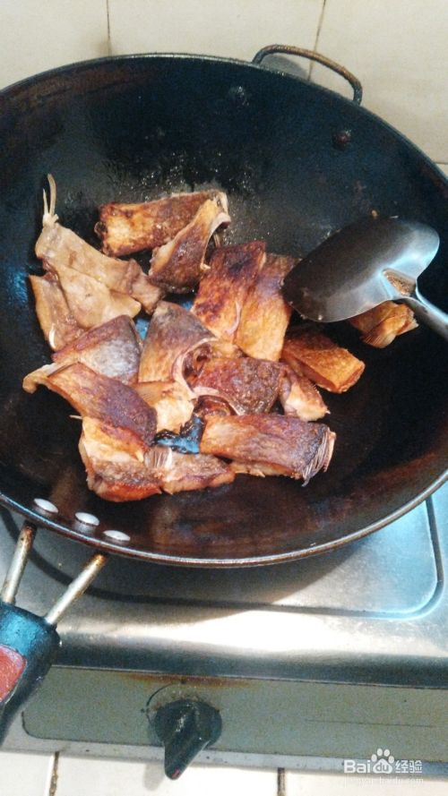 将切好的阳干鲫鱼放入锅中,一面煎好;