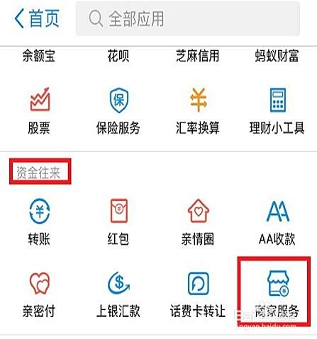 进入【更多】,找到【资金往来】栏目下面的【商家服务】。