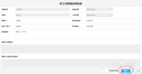 需要进行调动的员工直接填制表单就可以了,填完之后点击“提交”。