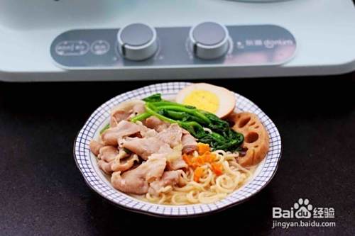 大火继续煮2分钟左右的时候。放入提前洗净的茼蒿。看见茼蒿断生变色的时候,放入卤蛋热一下,即可关火,卤蛋也可以不用加热哟。啦啦啦,好吃到哭的羊肉茼蒿卤味方便面就出锅咯,把方便面省到碗里面,上面铺上焯过水的羊肉卷和卤味即可食用。