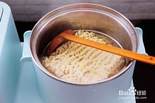 大火煮沸后,放入方便面后,进行用大火烧开。这个时候放入方便面的调料包,不喜欢调料包的可以适量放点盐。