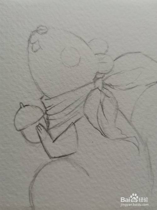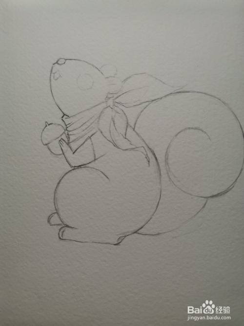 画出丝巾内部褶皱,然后再勾勒出松鼠的手臂和楱子轮廓。