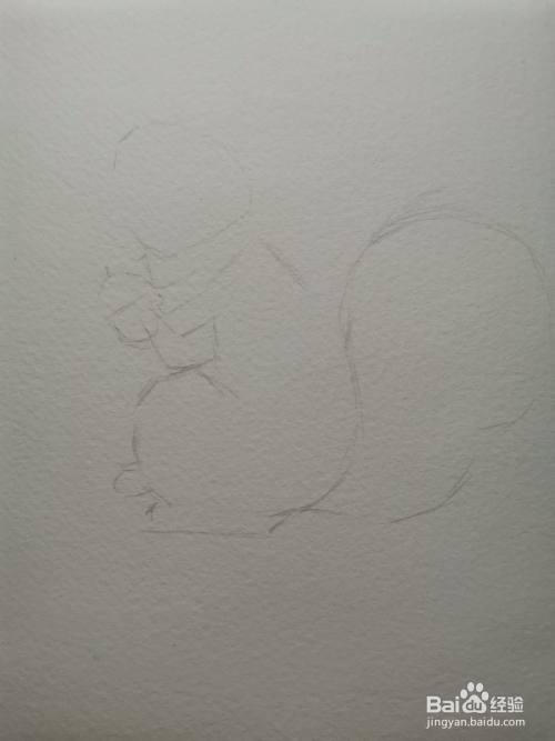 先用自动铅笔画短直线轻轻地切出松鼠的外轮廓。