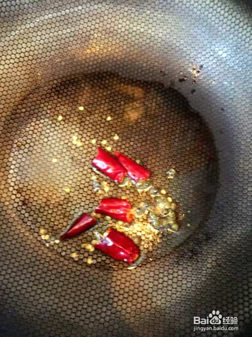 锅底放油,凉油放入辣椒,麻椒,炒香后捞出扔掉。