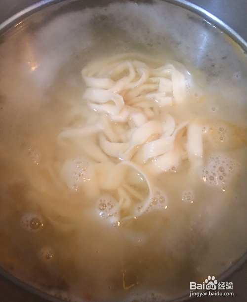 将面条放入开水中煮熟,我买的刀削面,也可用细面条。(面条最好在倒入肉丝之前煮,这样汤好后面条也熟了,具体自己实际情况来)