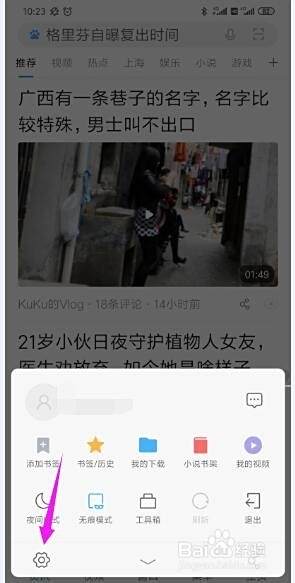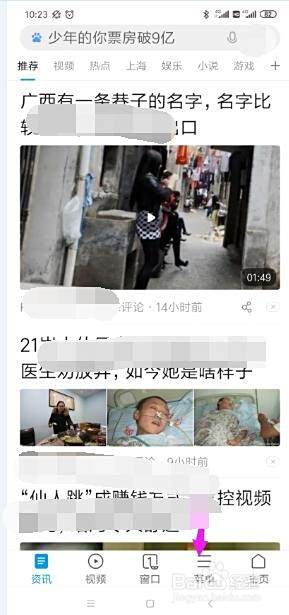 在红米浏览器的主界面,点击下方的三条横线,如图所示。