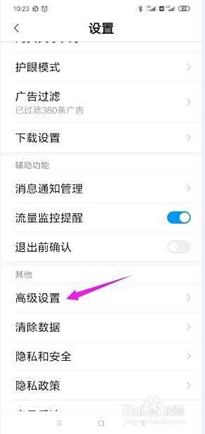 在设置的主界面,找到高级设置选项,点击打开,如图所示。