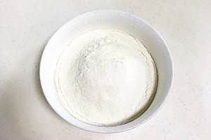 筛入混合好的低筋面粉、全脂奶粉和泡打粉,画“井”字拌至顺滑。