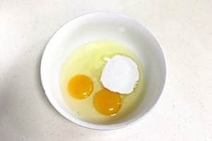 黄油隔热水搅拌至融化。往鸡蛋内加入糖粉,用手动打蛋器搅打均匀。