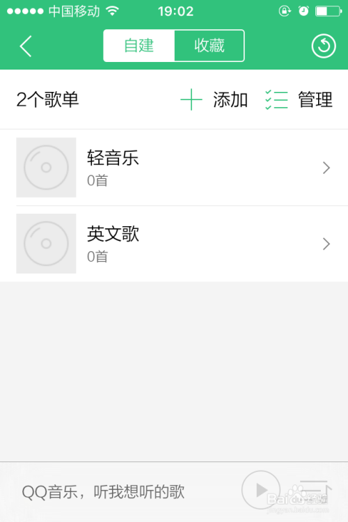 创建完成后,我们就可以看到我们歌单中就分成了两个类别,以后遇到这些类型的自己喜欢的歌曲别可以把它分类保存了;