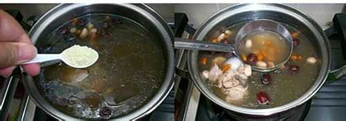 3)猪骨洗净,当大火煮滚后,猪骨放入锅内。