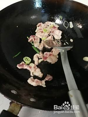五花肉用料酒酱油腌了,葱姜蒜,辣椒花椒,炝锅,炒五花肉。
