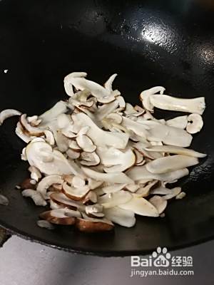 锅里放少许油,松茸放进去煸炒。如果出水太多,就倒出去。