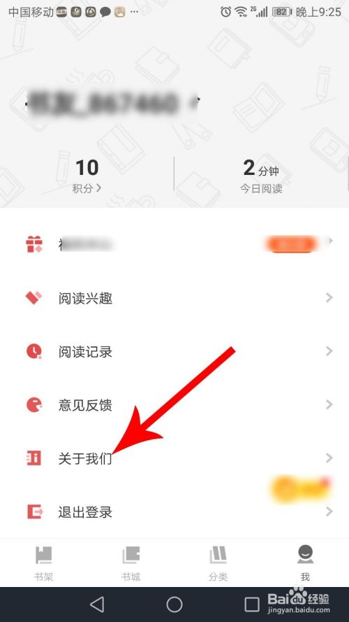 打开疯读小说个人中心页面,然后点击“关于我们”。