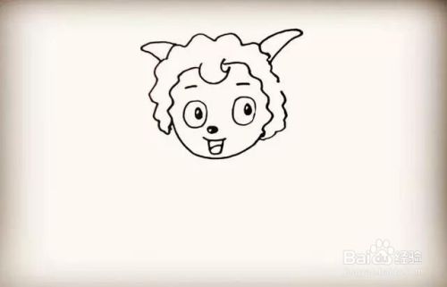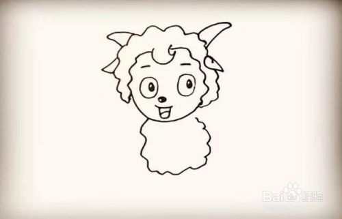 画出它脸颊一圈卷卷的羊毛.用波浪线把它勾落出来。