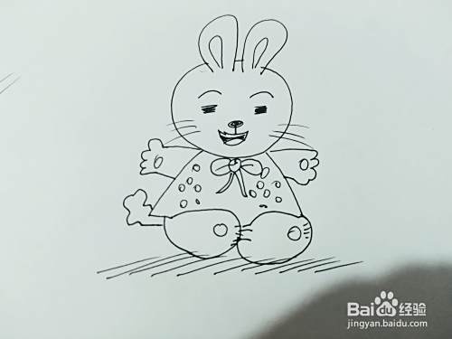 第六步,我们来最后画上小白兔的双手,还有衣服上的小花瓣,如下图