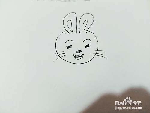 第二步,我们来画小白兔的眼睛,鼻子和两边的胡须,如下图