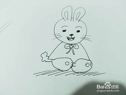 第四步,我们来画小白兔的两只腿。还有一只小尾巴,如下图